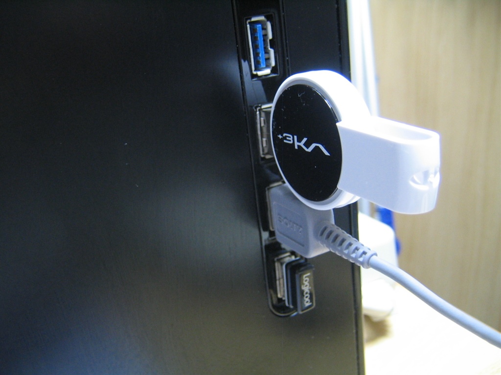 キャップと言うか、白いU字部分を持ち、黒い中心部を廻すとUSB端子部が回転します