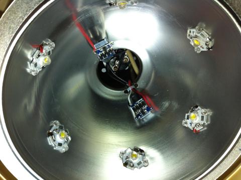 秋月の3W LED CoolWhite を6個、3Wx1個用定電流ドライバを改造して2個使用しています。