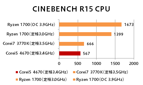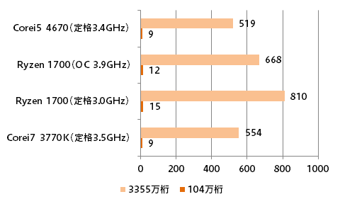 第三世代のIntel Corei7 3770KとAMD Ryzen 1700との比較グラフにしてあります。