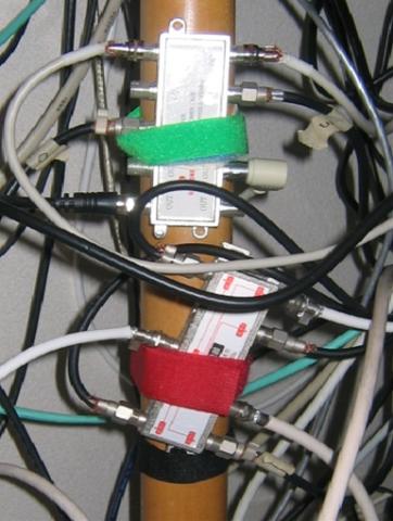 上の分配器はBS/CS , 下は地デジ です ケーブル処理も綺麗ではないですね..