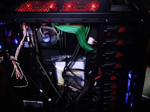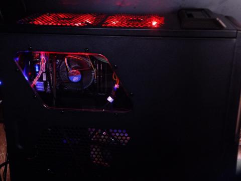 フロントのファンとケース内の間には3.5インチベイがあるので、内側にはあまりファンの光は届かないんですけどね。それゆえに、赤LEDファン入れてもいいかな? などと考えてしまうのが罠な気がしないでもないのです。