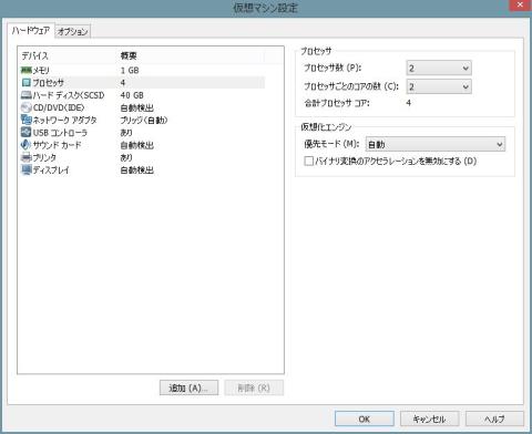 今回のいただいたマシーンの仮想環境は2プロセッサー各コアー4個の計8コア使っています
