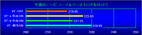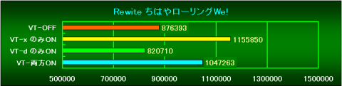 ほとんどの項目でVT-OFFのスコアが最下位であることから、VTを有効にすると性能が上がるのは一目瞭然です。