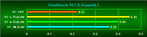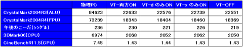 CPUの性能比較です。CPUの仮想技術と謳っているVT-xの効果が期待されます。