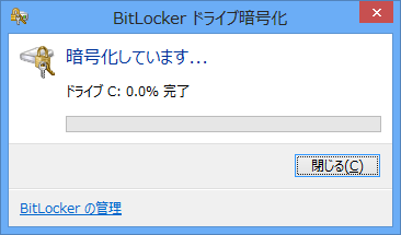BitLockerシステムチェックを実行した方が良いみたいですが、そのまま暗号化の開始をしました