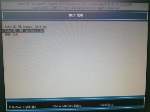 Intel MEBXがAMTの設定メニューになります、POST画面でCTRL+Pを押下