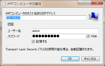 既知のコンピュータを追加ボタン押下で、AMT設定したPCを指定します。