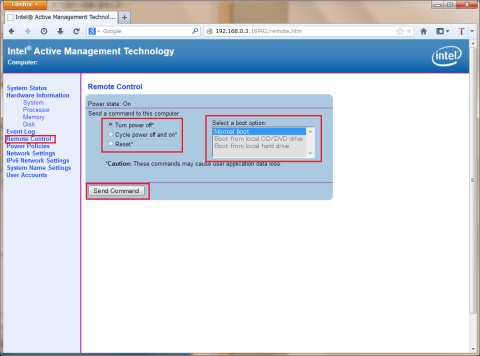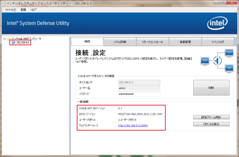 Intel® System Defense Utilityで基本的には操作できますが、ウェブインターフェースのリンクにJupmすると、Webブラウザでの操作も可能になります。