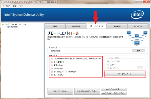 Intel® System Defense Utilityではリモートコントロールタブ画面で操作可能。