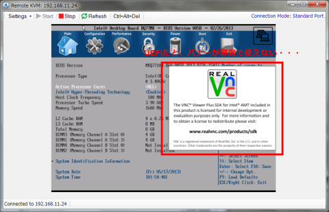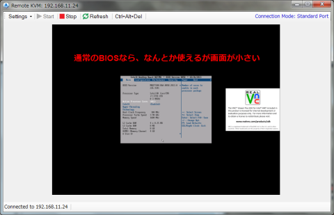 しかも、リモートデスクトップでは出来なかったBIOSの設定すら可能となってます。