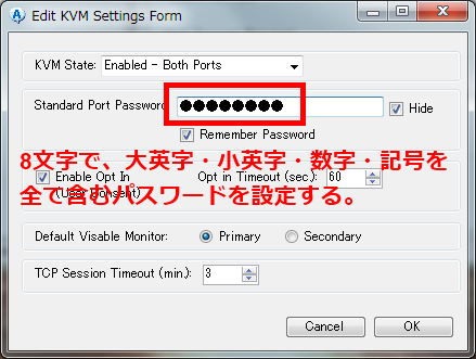 6.KVMの設定をしよう。パスワードを設定してくださいね。KVMの設定が完了すると、KVMビューワースタンダードが使えるようになります。