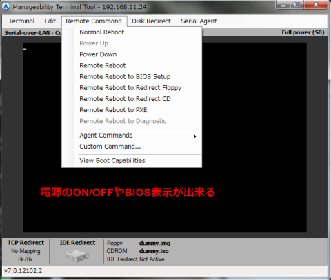 でも、画面が小さくて見辛い・・・。そんな場合は、Manageability Terminal Toolの画面で操作しよう。