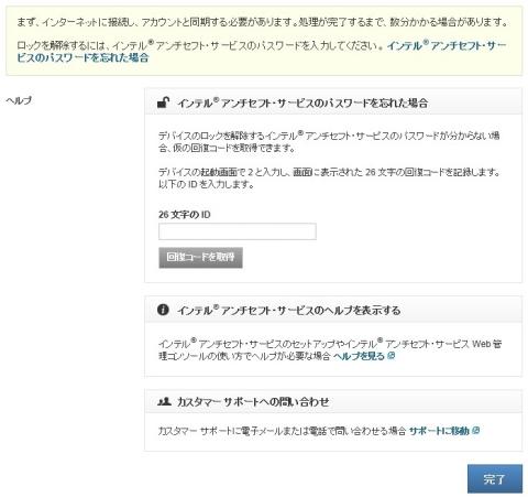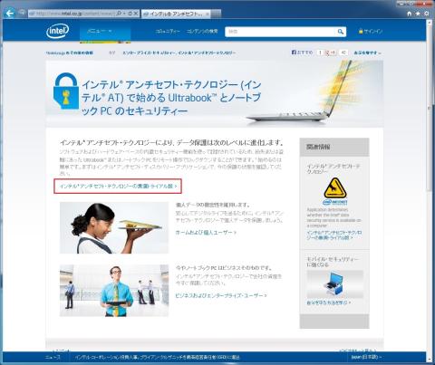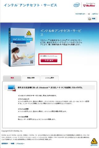 インテル アンチセフト・サービスのページに誘導されます。