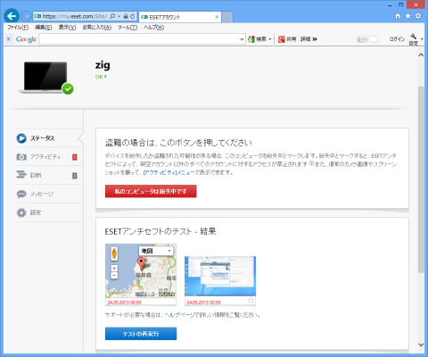 「ESET Smart Security」には「アンチセフト」機能が付いていました。