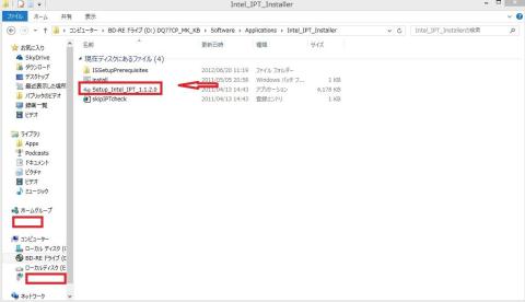 インテルIPT のプログラムを使用するには、ドライバーディスクの Software フォルダーの中の Applications フォルダーの中の Intel_IPT_Installer フォルダー 内