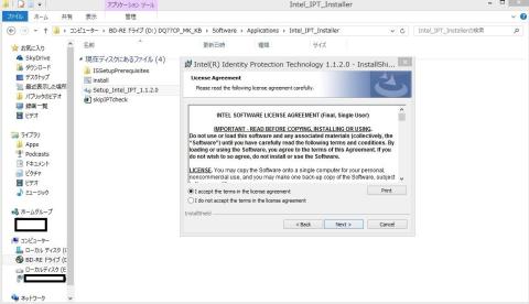 の Setup_Intel_IPT_1.1.2.0.exe を実行します。