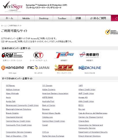 2アクセス対象のWebサイト、VPN、またはSaaSアプリケーションが、サービスに対応している必要があります。(サービスは、SymantecまたはVascoなどによって提供されています。)