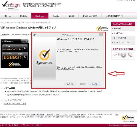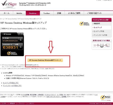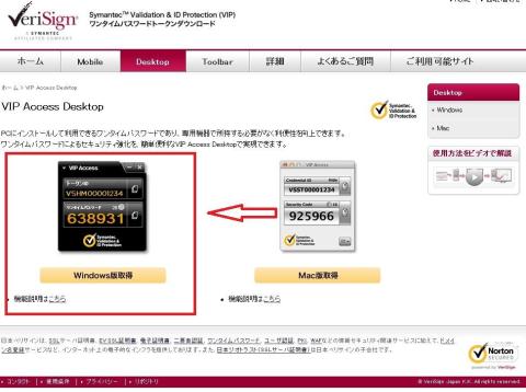 シマンテックのHPのベリサインのVIP ACCESS のページへ行ってプログラムをダウンロードし使ってみます。