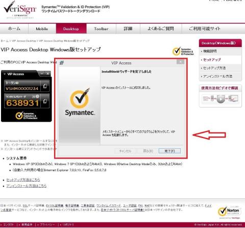尚、詳細の使い方は、シマンテックの導入方法のページ参照お願いします。