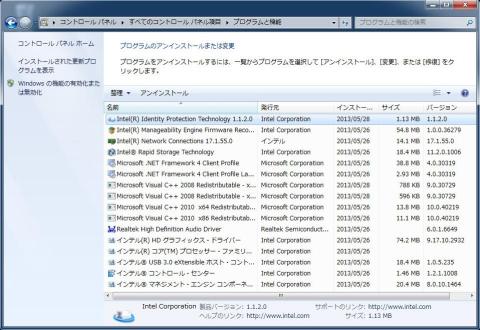 インストールを確認できるのは,コントロールパネル内の、"プログラムと機能"から、"Intel(R) Identity Protection Technology 1.1.2.0"がインストールされていることを確認できるだけです。