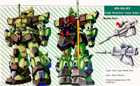 マイナーだけど「高機動型ザクII ゲルググ先行試作型 (MS-06R-3)」もかっこいい。