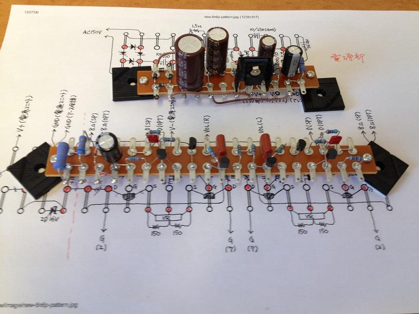 真空管周りの配線は初めてなので、ちょっととまどっています。