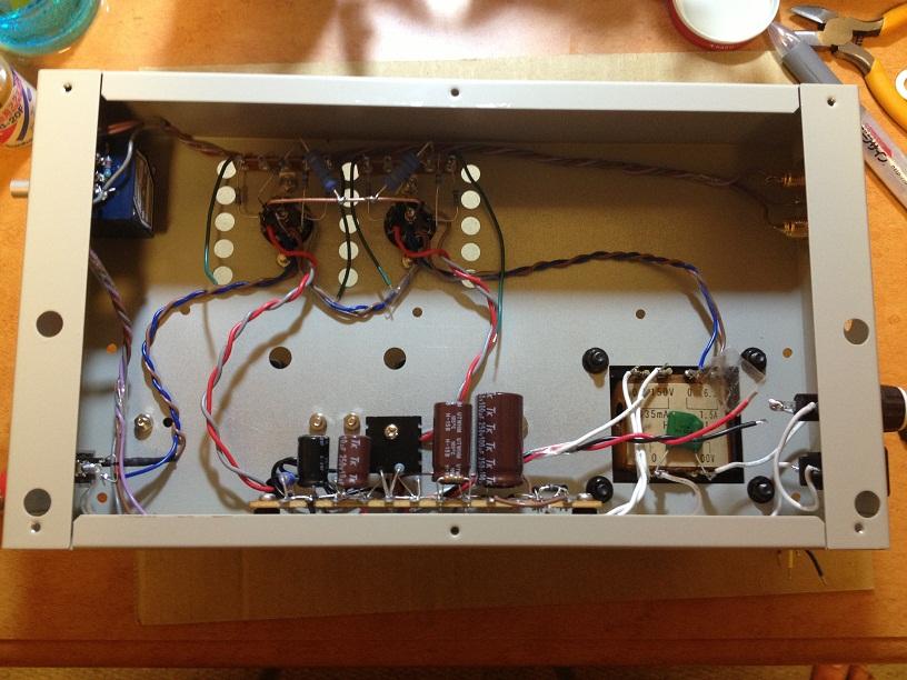 電源回路の通電確認も無事おわり、真空管ソケット周辺の配線も終了。