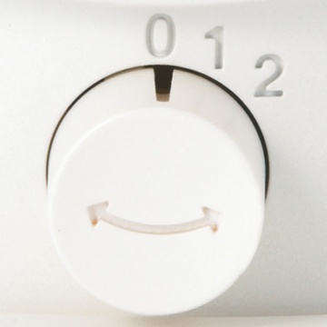 操作は前面のボタンを回すと、OFF/風量1/風量2の切り換えができ、押すと首振りのON/OFFが可能だ。