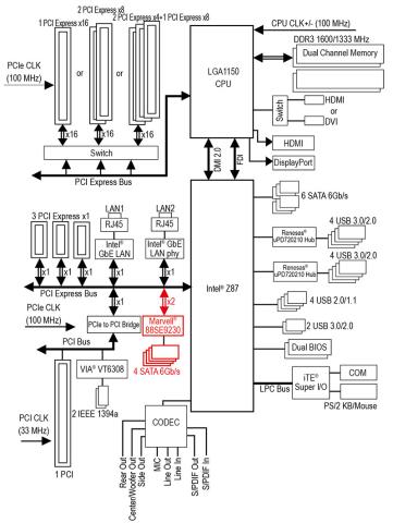 Z87 Express Chipsetになって、チップセットがサポートするS-ATAポート全6ポートが6Gbps対応になったためか、各社のマザーボードで、サードパーティー製のS-ATAポートを搭載するマザボードが減りました。