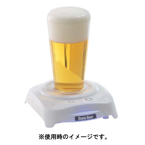 お手持ちのグラスにビールを注ぎ、本体の上にのせてスイッチに触れるだけで、