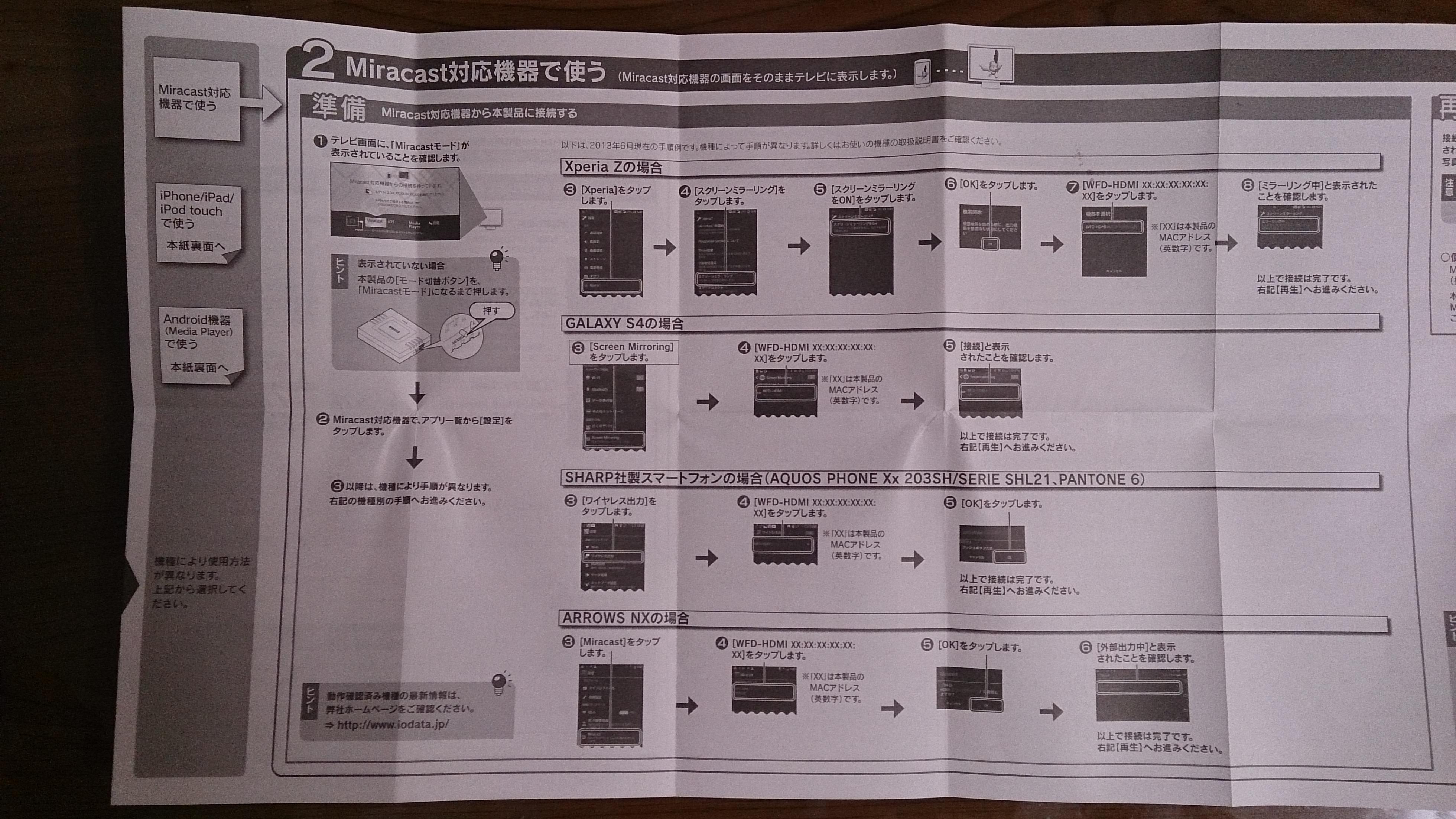 スクリーンミラーリングは使用ガイドにもあるように,スマホからの設定を行う。