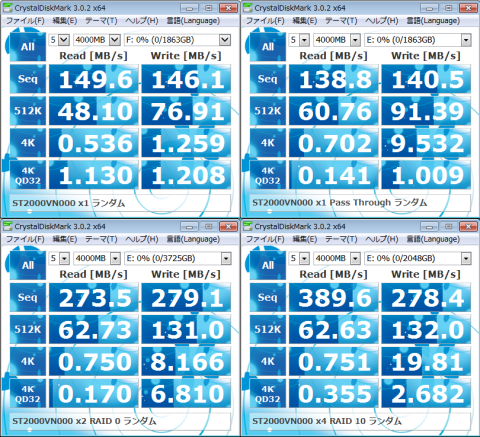 4台接続は RAID 0 ではなく RAID 10 構成です。