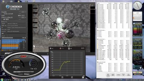 左下にPC画面を入れているが、CINEBENCHのCPUマルチコアテストのみを2周回している。
