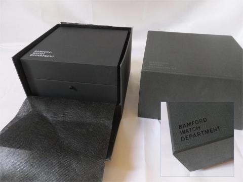 外箱とケースには「BAMFORD WATCH DEPARTMENT」と印字されている。