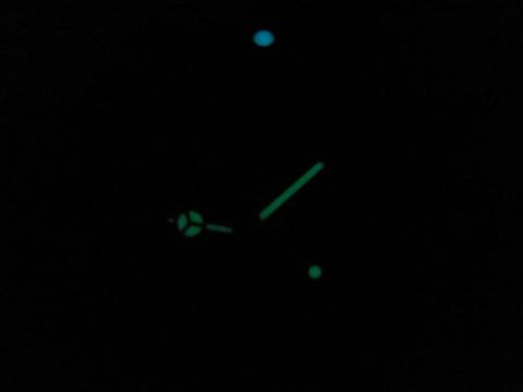 真っ暗だと針の夜光の「緑色」がはっきりします。