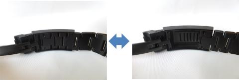 旧モデルの金具の上部を開く事でブレスレットをスライドさせるフリップロッククラスプから、スライド式でブレスレットの微調整が可能な新型のグライドロッククラスプに変更されました。