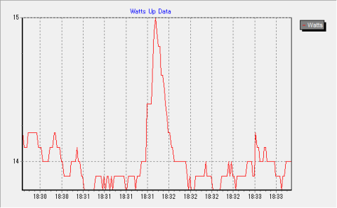 消費電力の記録間隔が10分のため、細かい動作の消費電力推移を確認することが出来ません。
