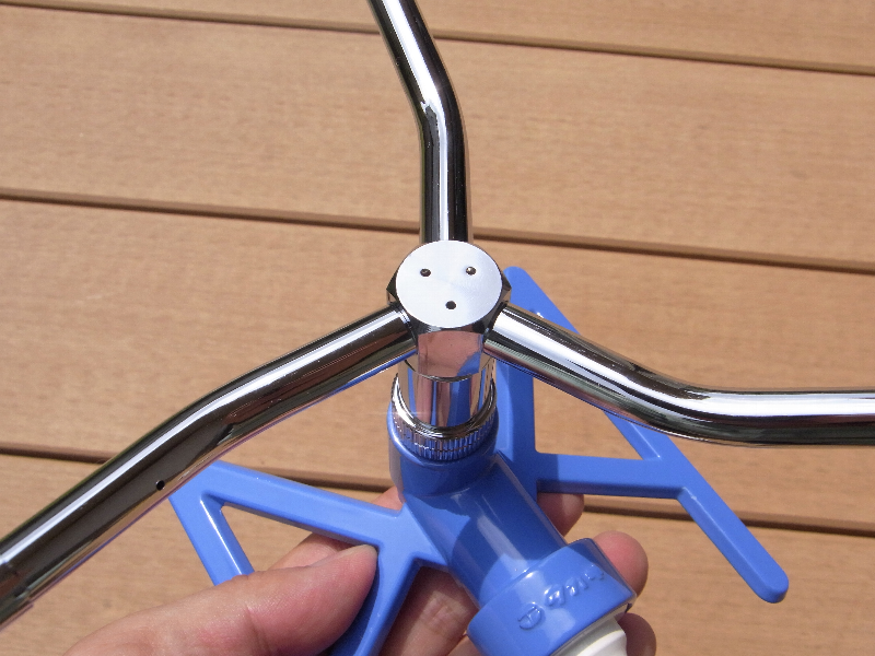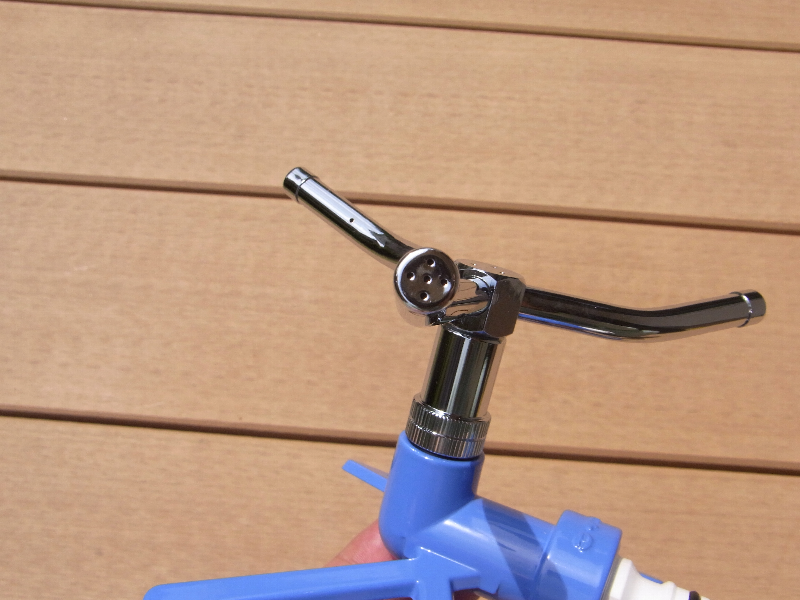 散水口は、ヘッドの中心部、アームの中間部、先端にある。