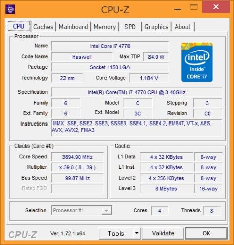 Intel CPU Core i7 4770は、我が家で一番の高パフォーマンスのPCのCPUです。