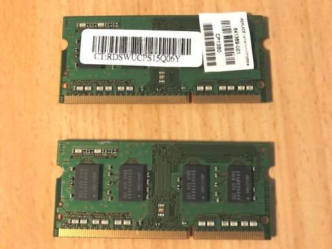 そこで確認作業で使えるよう、中古で調達することにしました。同じ価格で数種類のモジュールが置かれていたのですが、販売店の方で全部を並べて選ばせていただけましたので、メーカー製PCで標準装着に使われることが多いSAMSUNG製のモジュールで、同一ロットの同一型番が2枚揃っていたものを購入してきました。