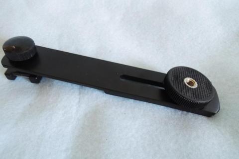 片側にフラッシュやLEDライトが取り付けられるアクセサリーシュー、もう一方がカメラ下面の3脚用ネジ穴にセットできるようになっている。