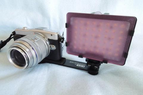 これを使うと、アクセサリーシューの無いコンデジやビデオカメラでもLEDライトが装着可能となるのだが・・・