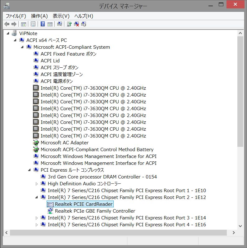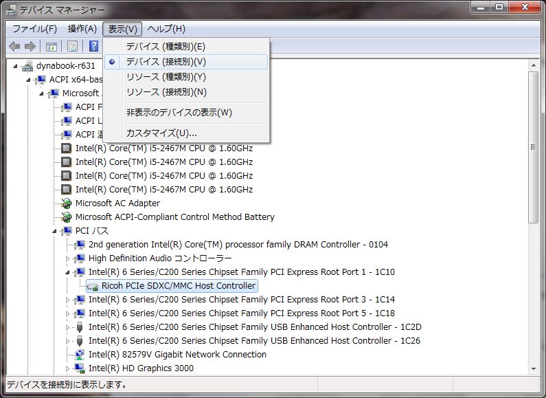 デバイスマネージャーで確認できます。