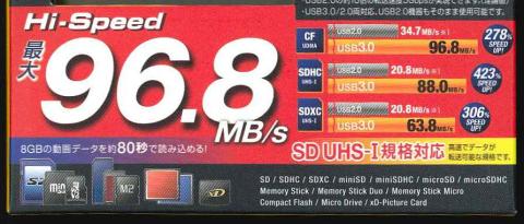 速度はPCで使うことを考えると速い方が良いのですが、カメラでの使用を考えると今くらいで十分なんですよねぇ。