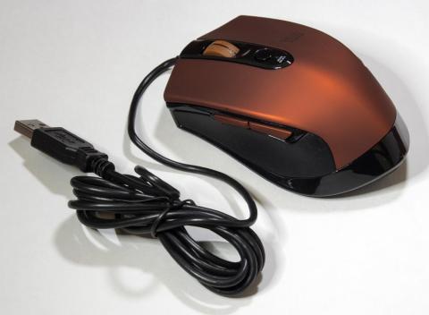 形状は親指側に戻る/進むボタンの付いた 5ボタンマウスになります。