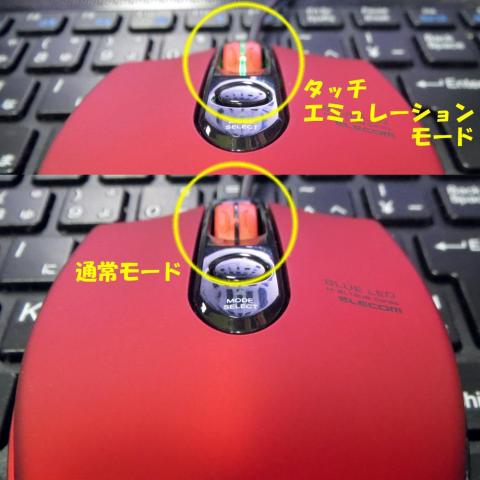タッチエミュレートボタンを押すとスクロールボタンに内蔵されている LEDが点き(消え)どちらのモードになっているか分かります。