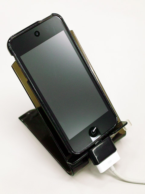 携帯電話スタンドに何とか乗りましたが、ケーブルがつらそう...