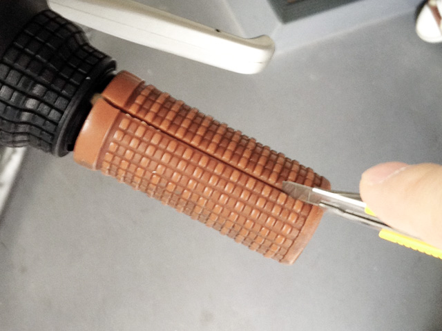 見た目的には茶色いグリップから黒に変わりバイクっぽい精悍な感じになりました。