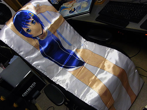 抱きついている写真とかは、この抱き枕カバー自体があまり耐久性なさそうなのと、空気いれるタイプがあまり「抱き枕」としての実用に耐えないらしいんで触らず眺めるだけにしておきましたw