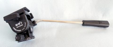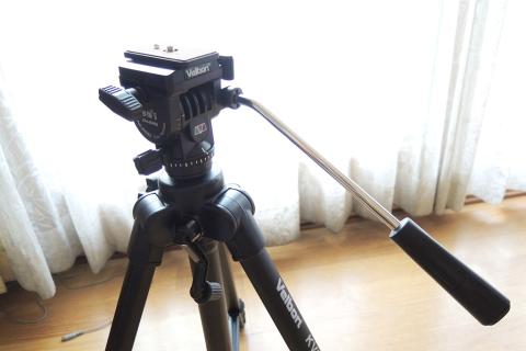 ビデオ用の長めのパンハンドルによる操作は、オイルフリュードによる適度な重さがあり、スムーズな動きが可能だ。